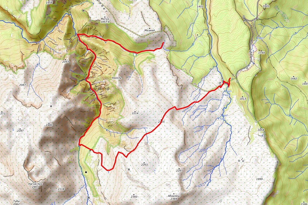 контур каньона р.Цица через кусты в начале